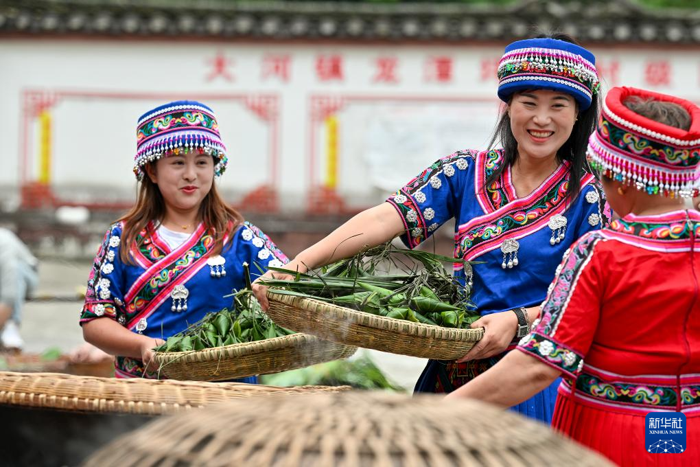 6月6日,在湖北省恩施土家族苗族自治州来凤县大河镇龙潭坪村,村民准备把包好的粽子上锅。