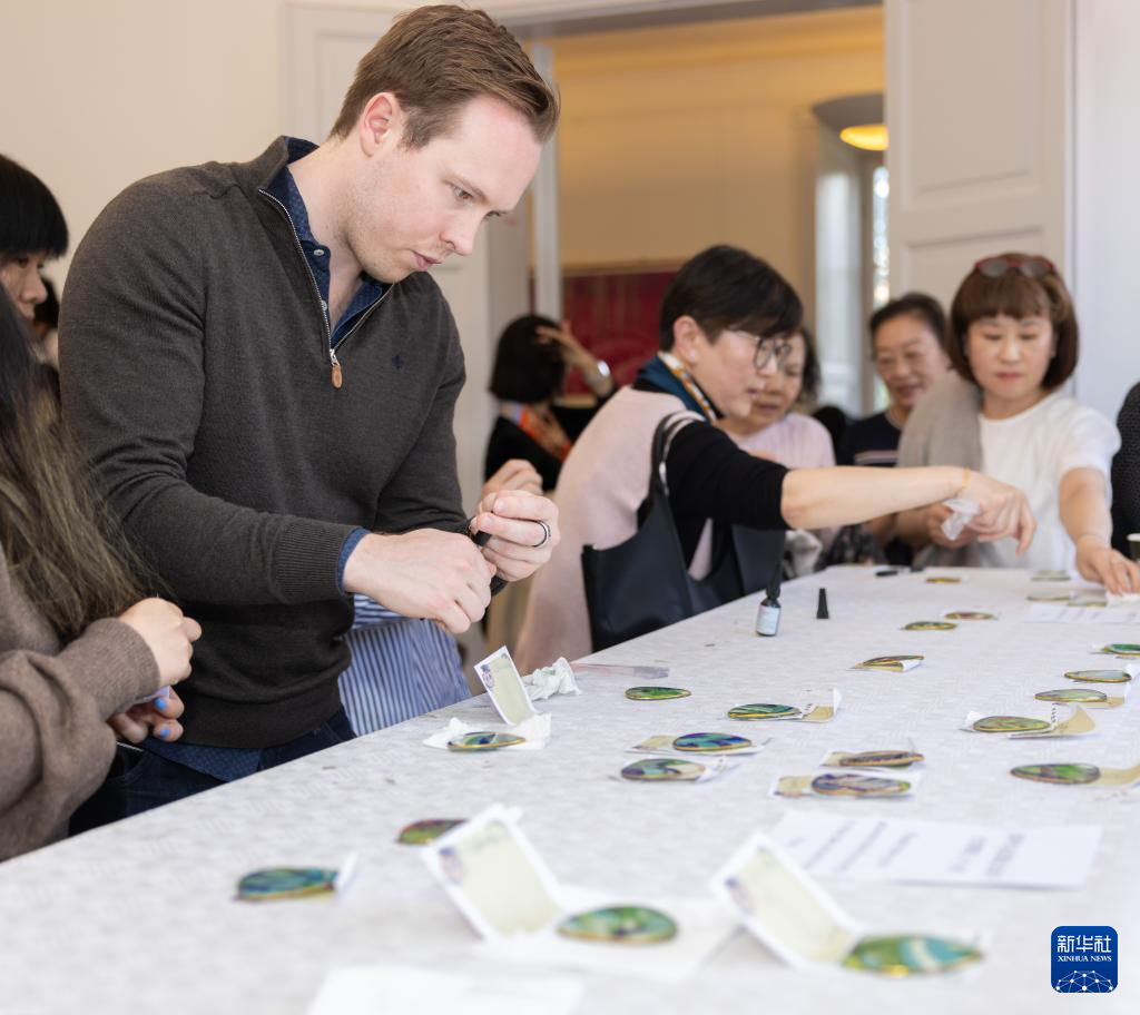 “文明互鉴的见证——中国景泰蓝艺术交流展”近日在瑞典首都斯德哥尔摩中国文化中心开幕,活动特邀中国工艺美术大师钟连盛现场带来“走进景泰蓝的世界:古老中国600年艺术瑰宝”主题演讲。主办方还专门设置了以“端午粽关情”为题的景泰蓝制作互动体验环节,中国工艺大师现场教授如何制作端午主题的景泰蓝饰品,吸引众多民众参与。