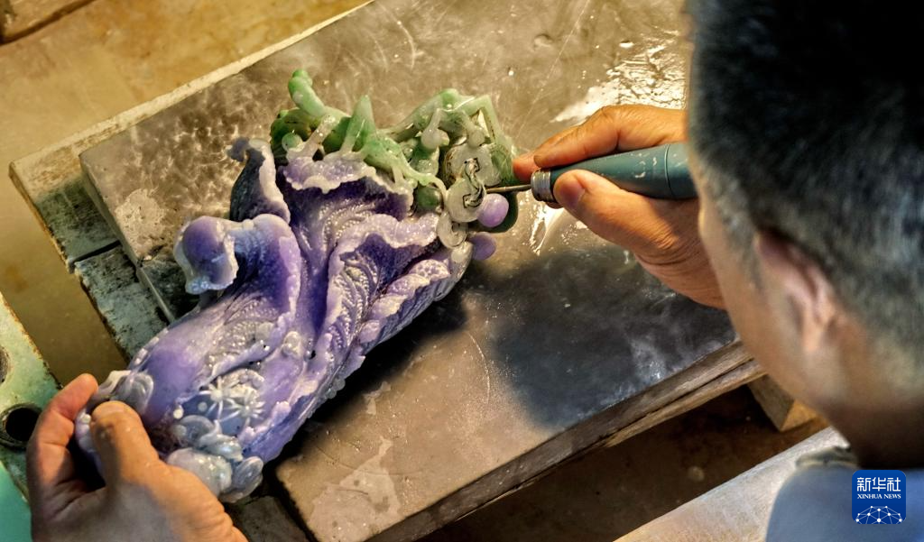 张铁成在工作室内进行玉雕创作(6月15日摄)。