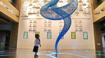 7月3日,参观者走在马可·波罗奇迹之旅展厅内。