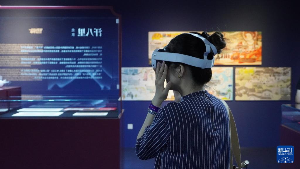 7月3日,参观者在马可·波罗奇迹之旅展上使用MR互动体验装置。