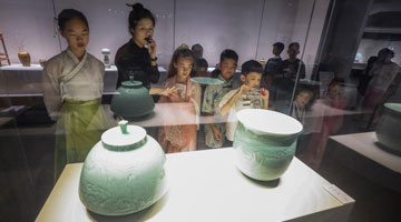 这是在位于河南省禹州市的钧官窑址博物馆内拍摄的钧窑展品(7月3日摄)。