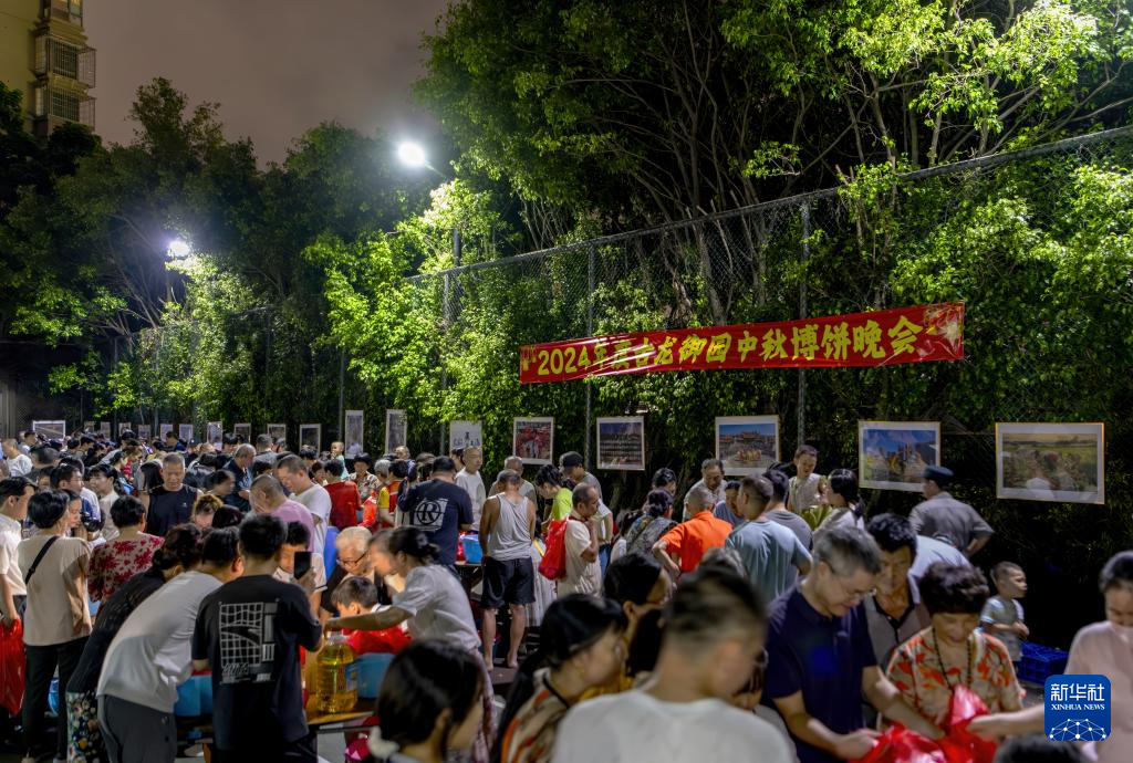 9月14日,在福建厦门一小区内,居民一起参加博饼比赛。