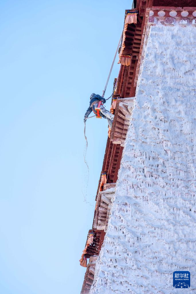 10月31日拍摄的布达拉宫年度外墙粉刷工作现场。