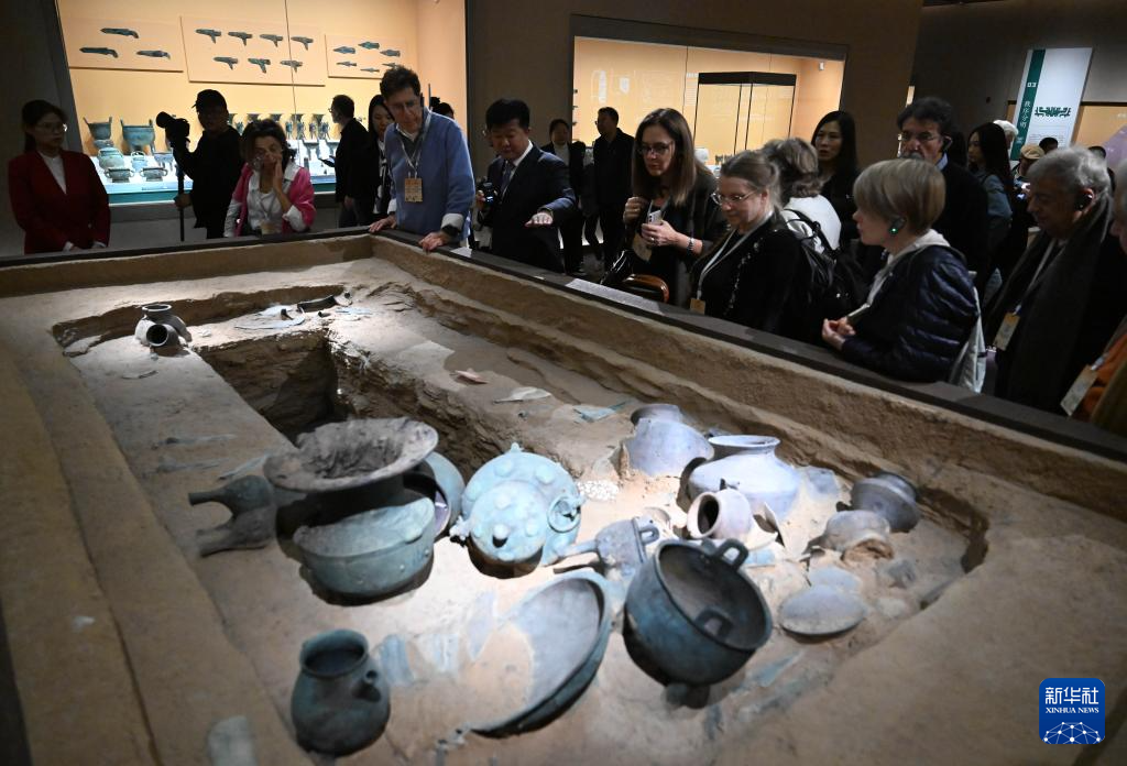 11月5日,外宾在河南省安阳市殷墟博物馆参观。