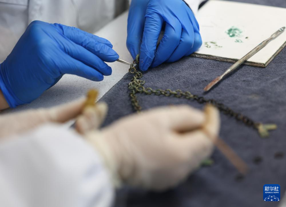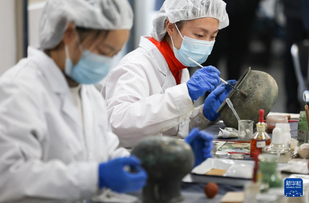12月16日,三星堆研究院工作人员在修复青铜文物。