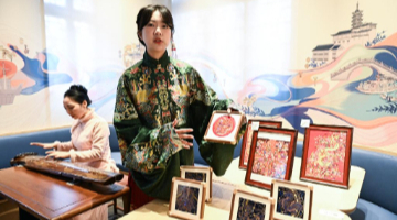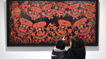 1月12日,在埃塞俄比亚首都亚的斯亚贝巴友谊广场,当地市民在“庆祝中埃塞建交55周年暨欢乐春节活动”现场体验中国剪纸文化。