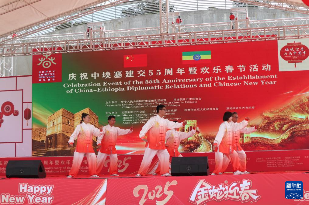 1月12日,在埃塞俄比亚首都亚的斯亚贝巴友谊广场,人们在“庆祝中埃塞建交55周年暨欢乐春节活动”现场表演太极拳。