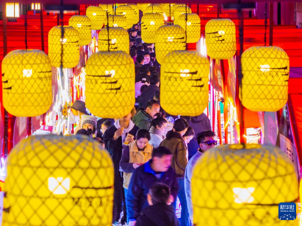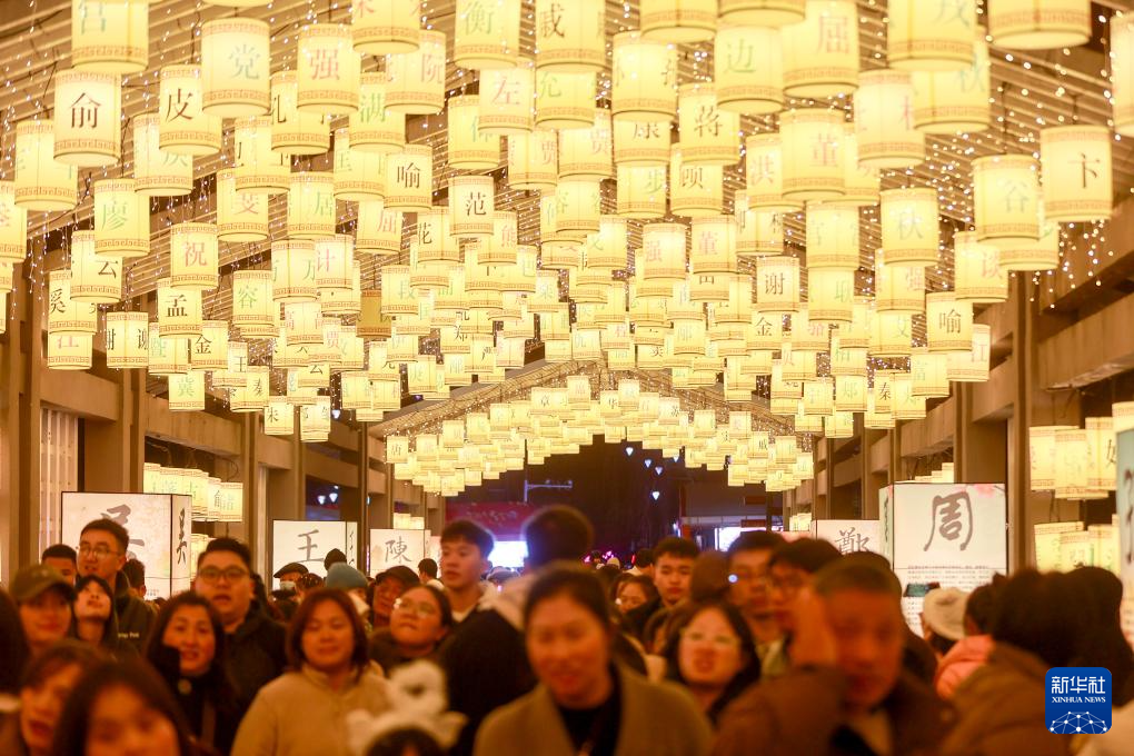 1月18日晚,河南洛阳2025年隋唐河洛文化庙会暨新春灯会试亮灯,吸引市民游客观赏。