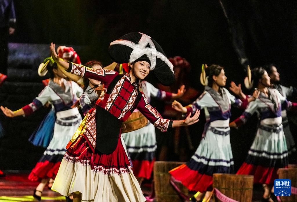 8月12日晚,情景歌舞剧《路,在云端》在贵阳上演。该剧以贵州省交通发展的历史巨变为切入点,将贵州多彩的少数民族风情和秀美的山川河谷作为创作素材,深情讲述世代生活于黔贵大地上的各族儿女,在党的领导下铺就通向幸福生活康庄大道的动人故事。