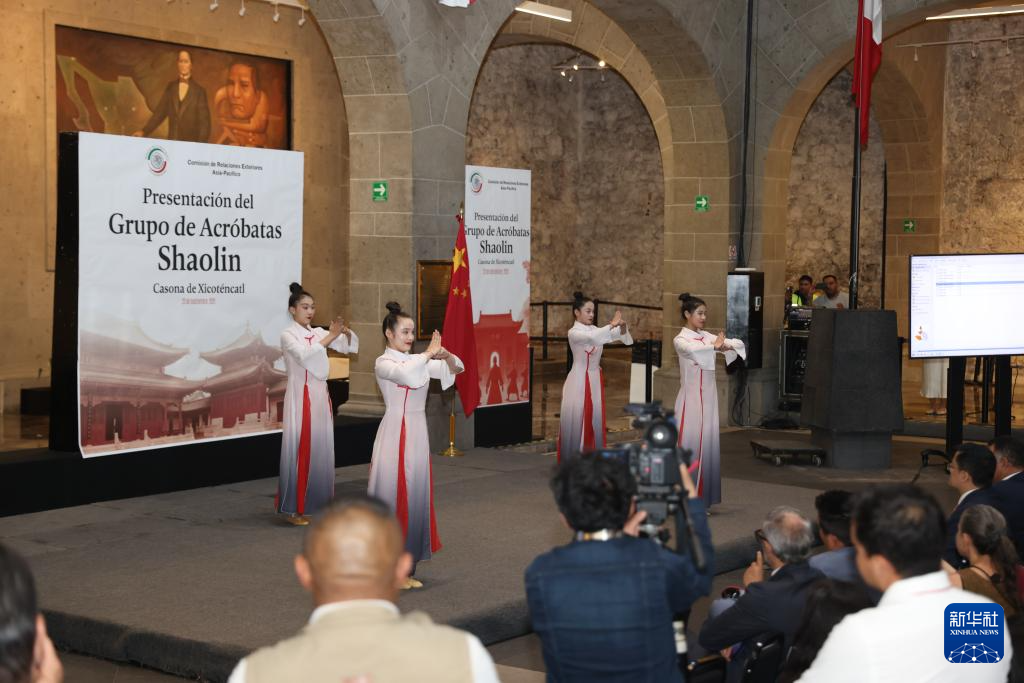 9月23日,在墨西哥首都墨西哥城,河南省杂技集团的演员在墨西哥参议院表演武术。新华社记者 李梦馨 摄