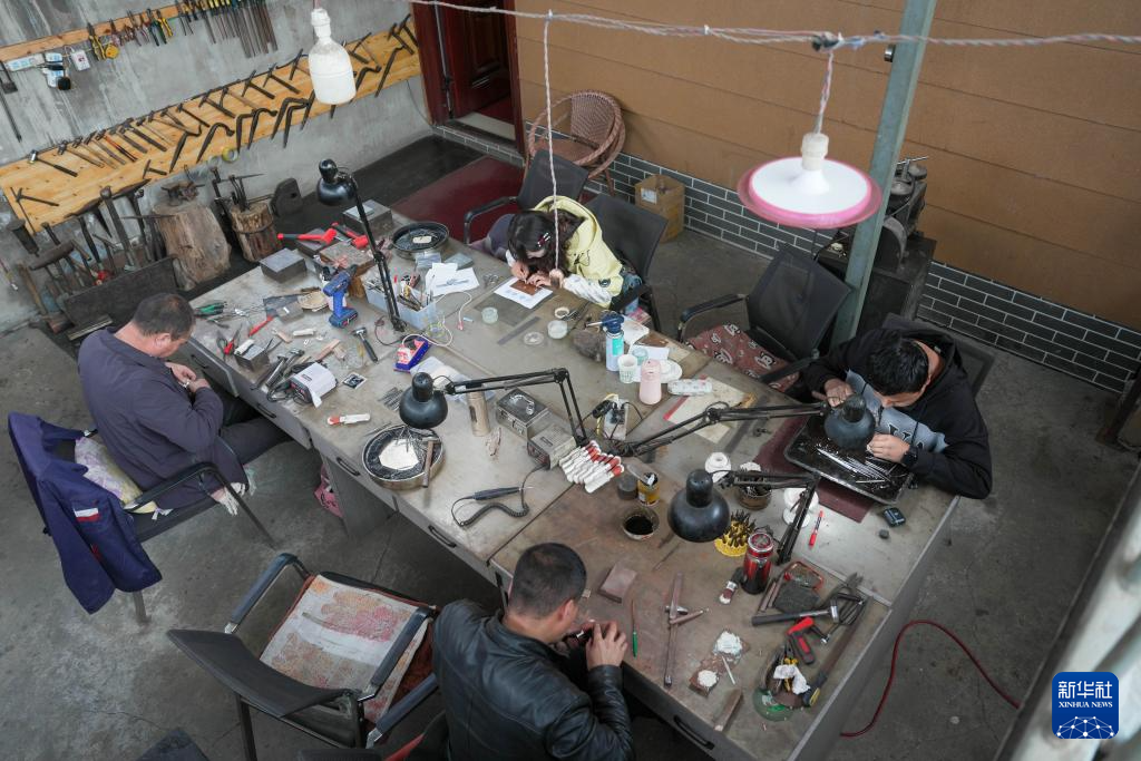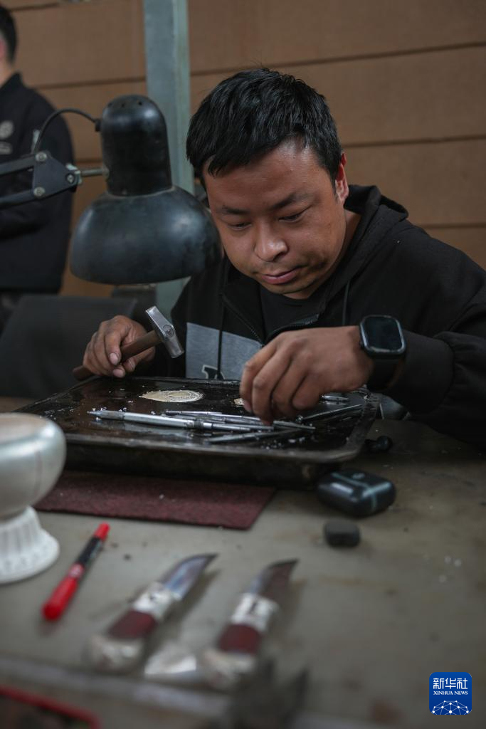 2021年,以东西部协作为契机,江苏省南京市栖霞区对口支援湟中区,谋划以银铜器加工为主的乡村振兴产业,打造鲁沙尔镇阳坡村民族手工艺加工基地。基地采取“股份合作社+基地+农户”经营模式,全村400多户村民中,近40%的村民靠这门手艺增收致富。