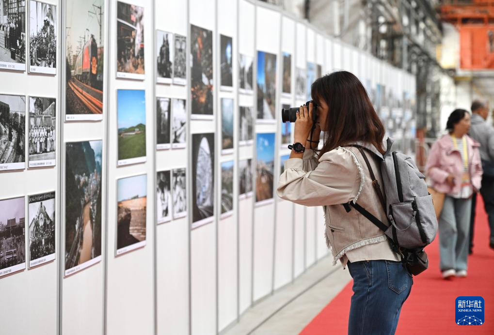 9月27日,观众在第三届中国铁路文化收藏博览会铁路摄影展上拍照。