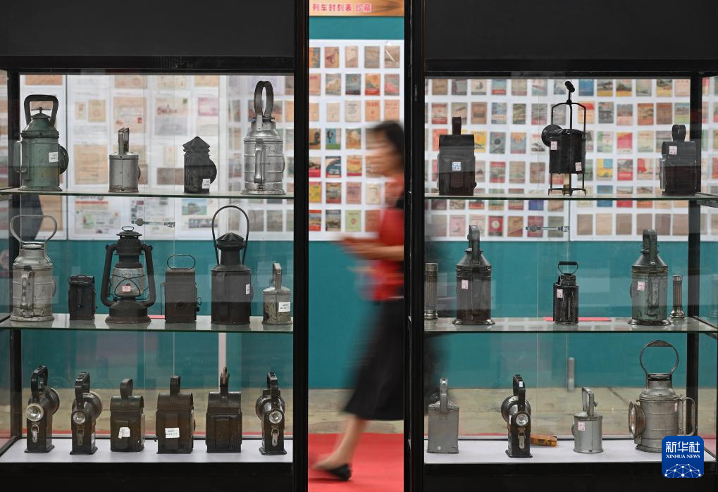 9月27日,观众在第三届中国铁路文化收藏博览会上参观铁路文化老物件展。