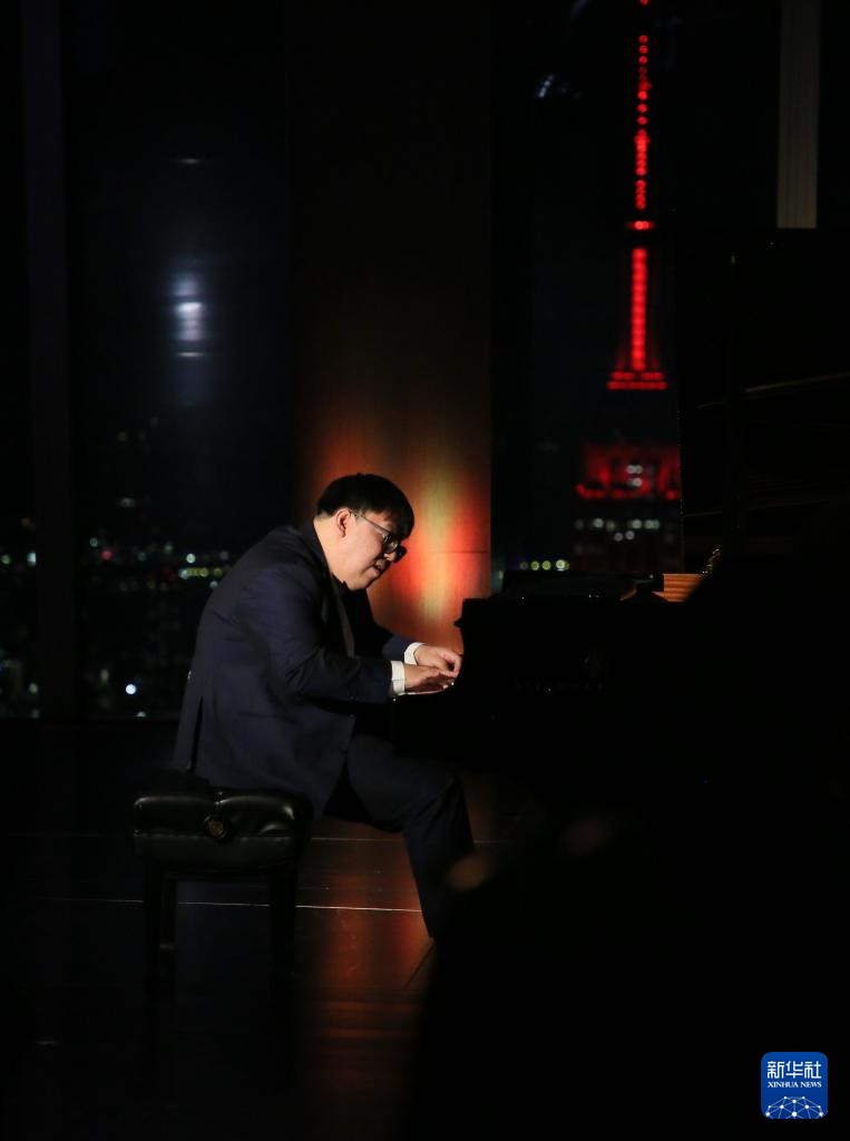 10月6日,在美国纽约,青年钢琴家韦子健在“听月雅集”中秋音乐会上表演。