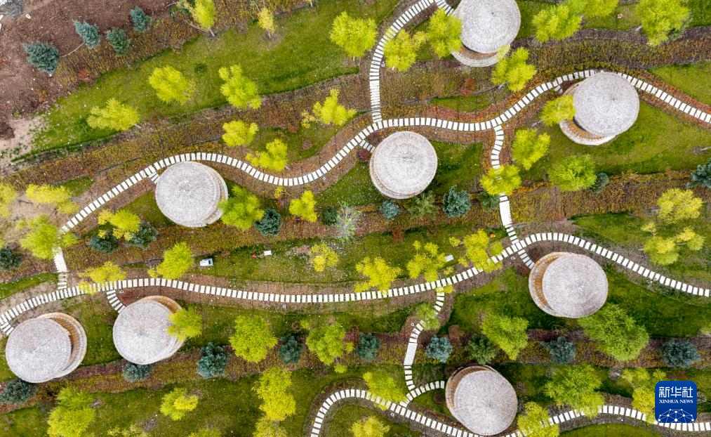隆德县城关镇杨家店村星空民宿旅游区(无人机照片,10月26日摄)。