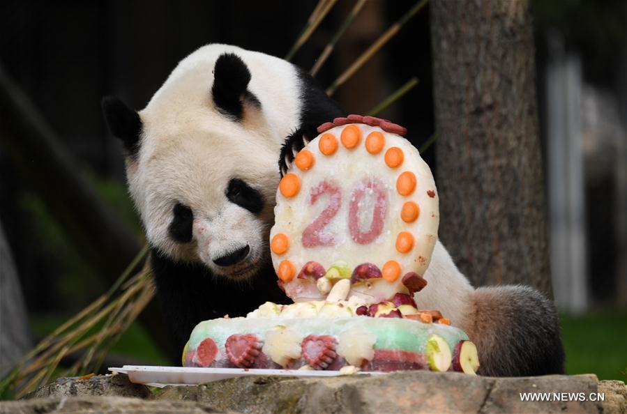 Giant panda Tian Tian celebrates 20th birthday in U.S.