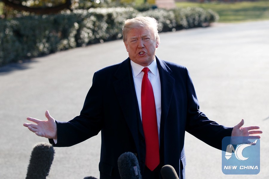 U.S. President Donald Trump answers questions from the press before departing the White House in Washington D.C., United States on March 13, 2018. (Xinhua/Ting Shen)
