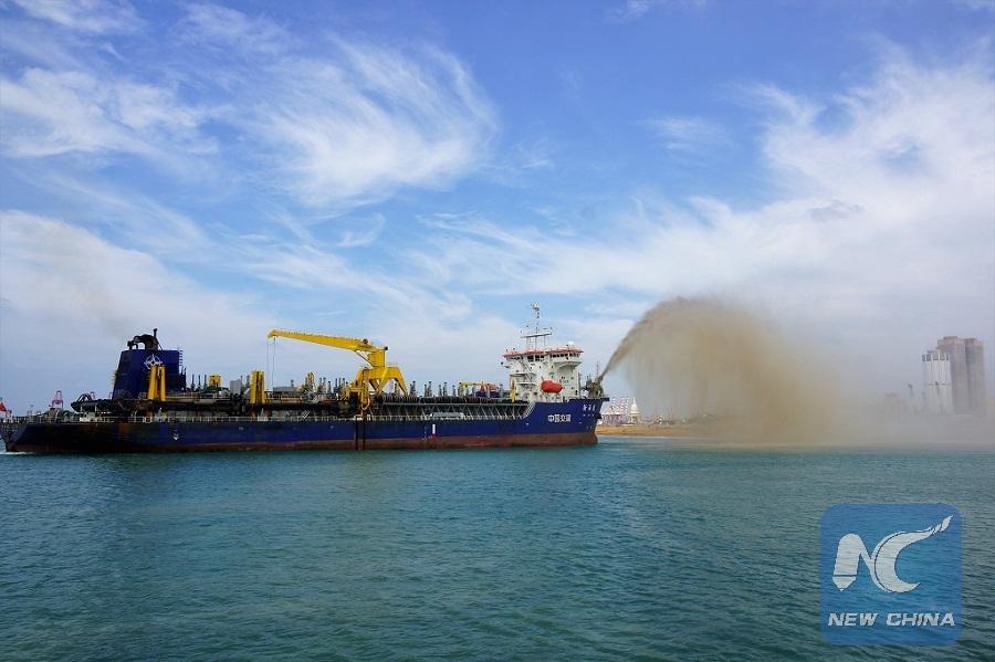 The file photo shows a Chinese dredger works at the construction site of the Colombo Port City project in Colombo Port City, Colombo, Sri Lanka in Dec. 16, 2017. (Xinhua/Tang Lu)