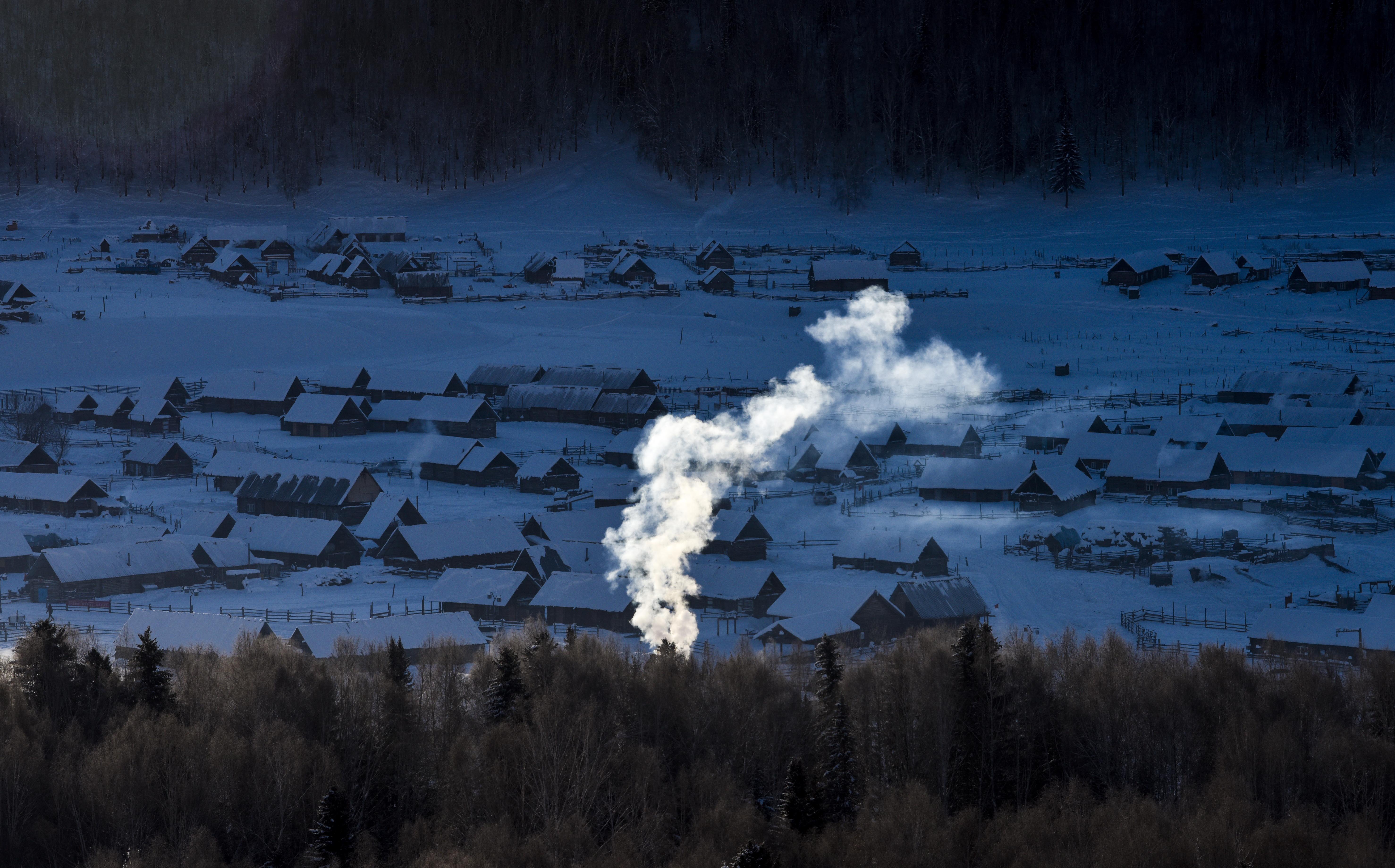 Hemu Village of Kanas at dawn, northwest China's Xinjiang Uygur Autonomous Region. (Xinhua/Zhao Ge)