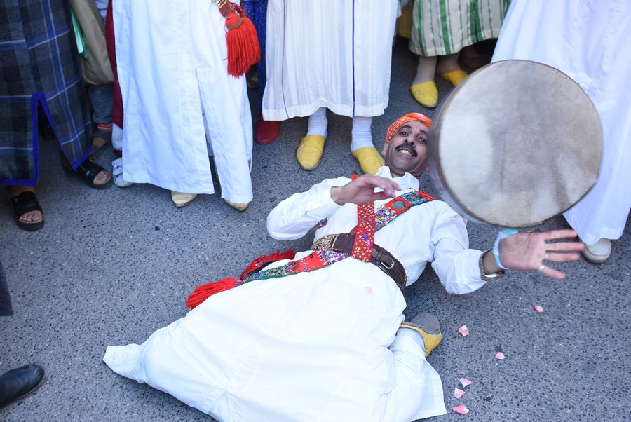 A performer celebrates the Islamic Prophet Muhammad's birthday in Sale, Morocco, on Nov. 9, 2019. (Photo by Chadi/Xinhua)