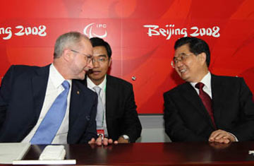 |   | Hu, Craven attend Beijing Paralympics closing ceremony |  | President Hu Jintao talks to International Paralympic Committee President Craven during the closing ceremony of the Beijing  Paralympic Games. |