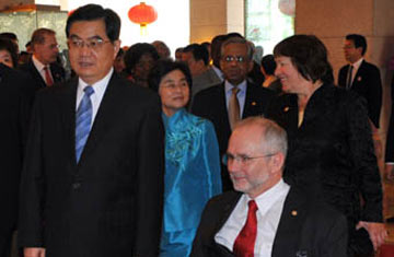 |   | Hu hosts luncheon for guests |  | President Hu Jintao Wednesday held a luncheon for international dignitaries who will attend the Beijing Paralympics closing ceremony in the evening. |