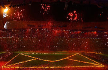 |   | Performance: A Letter to the Future |  | Red leaves of Fragrant Hill are shaked off at the center of the field during the art performance "A Letter to the Future" of the closing ceremony of Beijing Paralympic Games. |