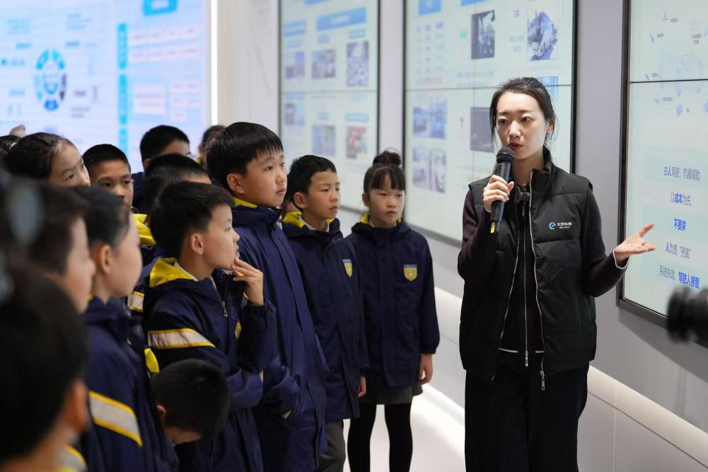 10月28日上午,黄城根小学附属实验分校的师生代表们从校园出发,满怀期待地踏上这场科技探索数字素养之旅,成为活动中最闪亮的“科技小先锋”。活动首站是北京市高级别自动驾驶示范区创新运营中心,学生们近距离接触自动驾驶前沿技术成果,感受科技如何改变生活、推动社会进步。随后师生来到小米汽车北京超级工厂,机械臂自动装配,AMR机器人智慧运输,现场见证了“人机协同”的高效画面。最后一站师生走进“机器人大世界”,与各种功能的机器人“零距离接触”。孩子们通过工程师的讲解,了解到机器人背后的传感技术、智能算法与芯片存储等科技原理,感受到科技与人文的完美融合。