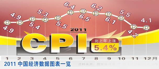 2011年12月份,CPI同比上漲4.1%;2011年全年比上年上漲5.4%。 [詳細]