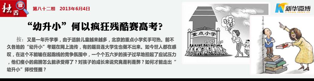 【孩子精神分裂】 A校搞面談,B??紛W數(shù),C??粗夭潘?,D校要英語(yǔ)會(huì)話,孩子們考前往往要精神分裂好長(zhǎng)一段時(shí)間,學(xué)生進(jìn)一次校門(mén)就得背一次考試圣經(jīng)。