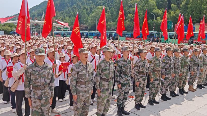 9月4日,江西吉安井冈山市红旗广场热闹非凡,来自井冈山中学的1200余名高一新生齐聚于此,共同开启“我的井冈行”红色研学活动。