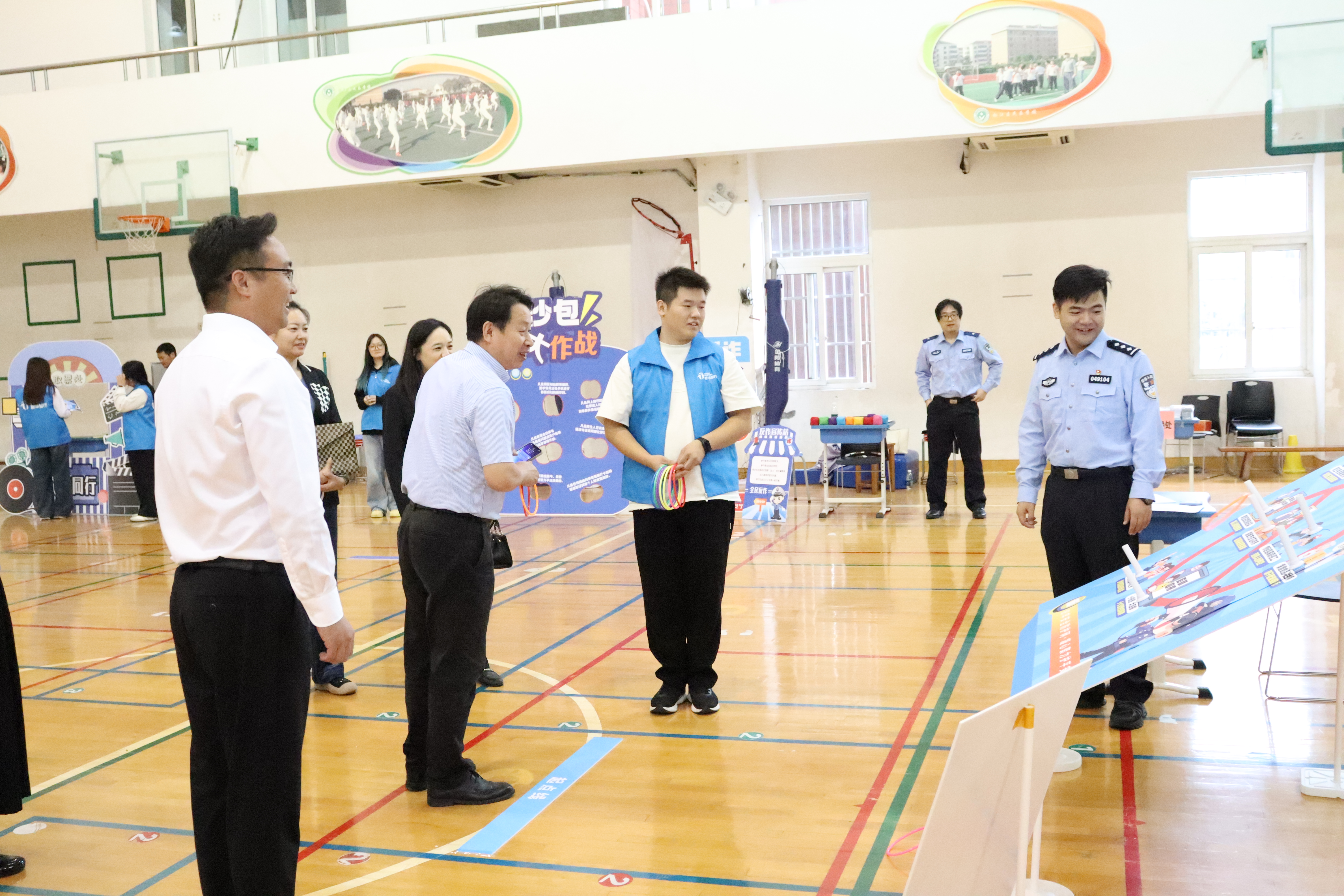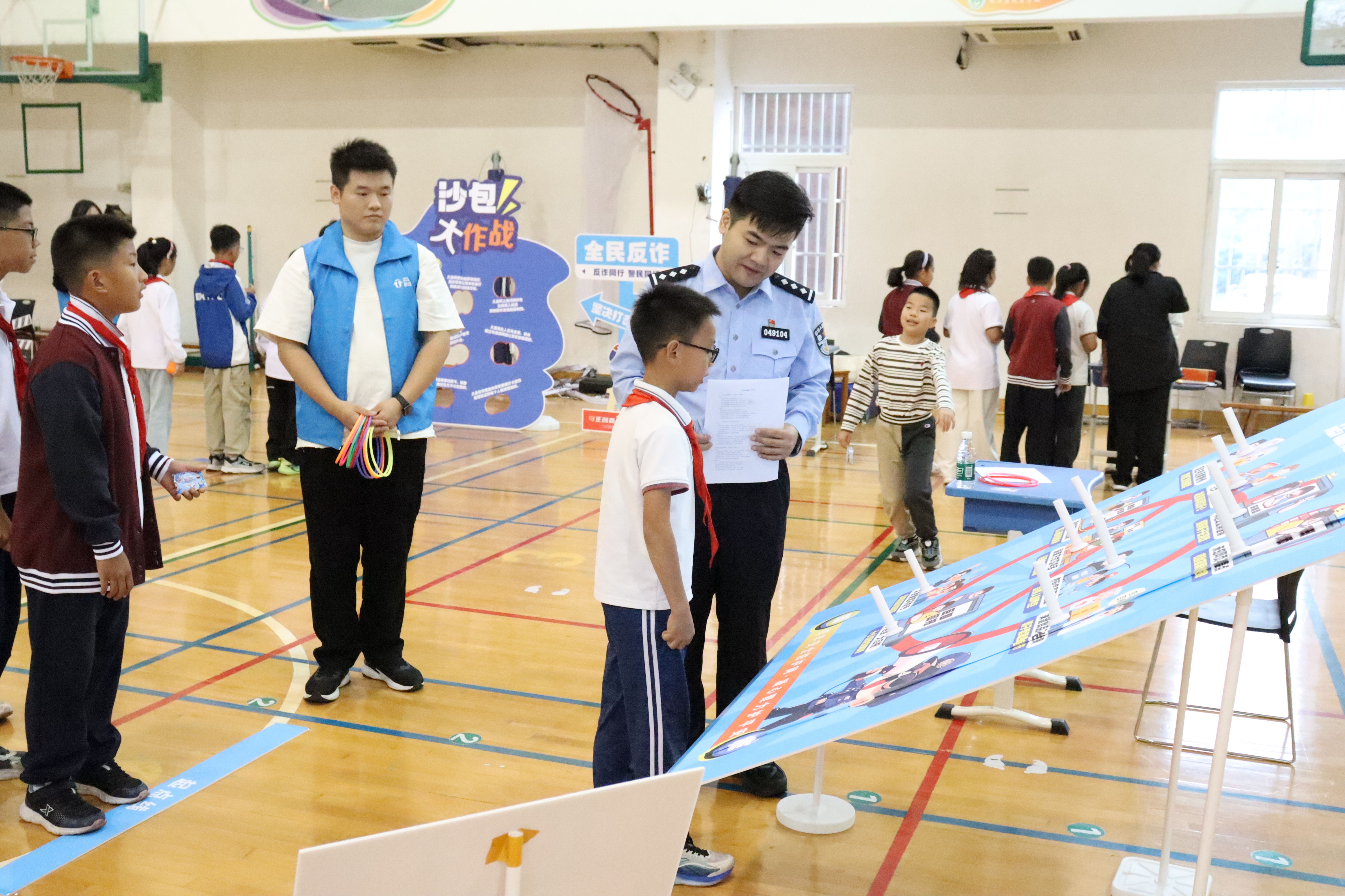 与此同时,风雨操场上的“法治反诈闯关谷”活动也吸引了众多学生参与。现场设置了法治盲盒墙、法治人生大冒险、反诈套圈圈等五个趣味游戏点位,将法律知识与反诈技巧融入互动游戏中,让学生们在轻松愉快的氛围中学习法律、增强防范意识。