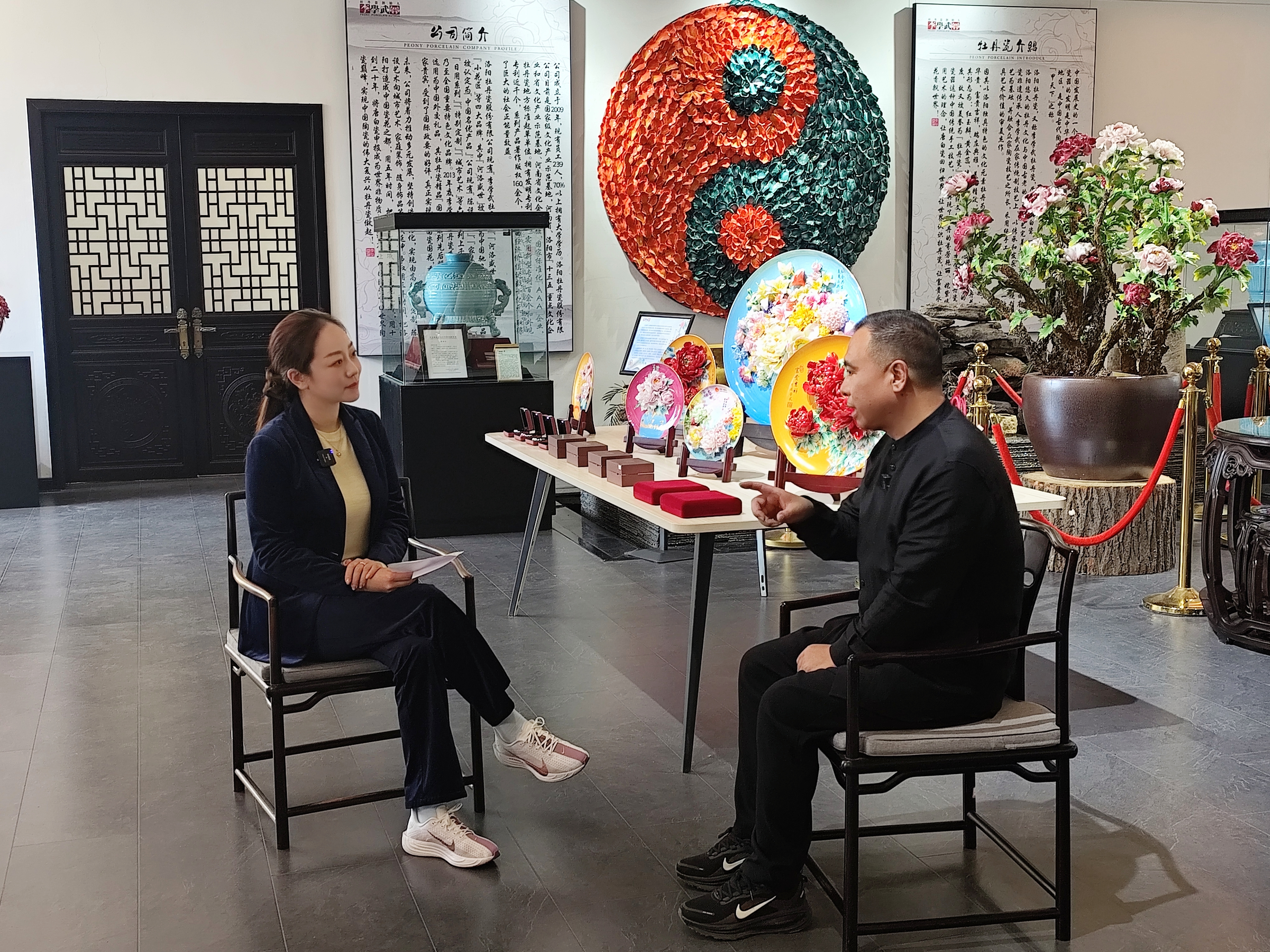 近日,“文明中国”主题采访报道组走进河南洛阳李学武牡丹瓷博物馆,与“中国好人”、唐白瓷非遗传承人、牡丹瓷创始人李学武进行深度对话。郭萌萌摄