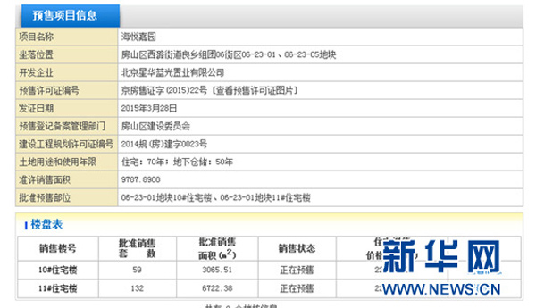 然記者查閱住建委官網(wǎng)獲知,截至6月5日,藍(lán)光海悅城獲得過(guò)三次預(yù)售證,分別為京房售證字(2014)162號(hào),京房售證字(2014)227號(hào),京房售證字(2015)22號(hào),對(duì)應(yīng)于三期項(xiàng)目,目前尚未獲批四期預(yù)售證。[詳情]