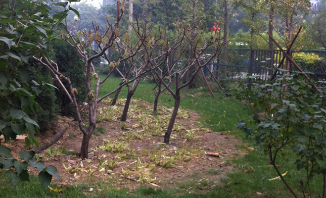 另外記者還發(fā)現(xiàn)在小區(qū)內(nèi)有多個(gè)區(qū)域的綠植出現(xiàn)了枯死,在簇簇濃綠之中格外扎眼。據(jù)社區(qū)內(nèi)的一位業(yè)主介紹,這種情況每年都會(huì)出現(xiàn)(該項(xiàng)目入駐時(shí)間為2008年)。就在調(diào)查期間,一棟樓的門口位置圍著幾名身著物業(yè)人員。原來,這里的地板磚出現(xiàn)了斷裂、拱起,需要對(duì)其進(jìn)行切割、整修。記者還在花壇兩側(cè)、雕像周圍發(fā)現(xiàn)了裂縫。
