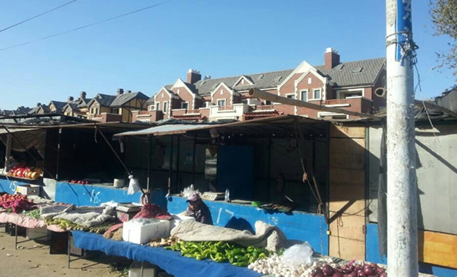 靠近項(xiàng)目南側(cè)有一家農(nóng)貿(mào)集市,很多周邊居民在此選購瓜果蔬菜。居民的基本生活條件能得到保障。