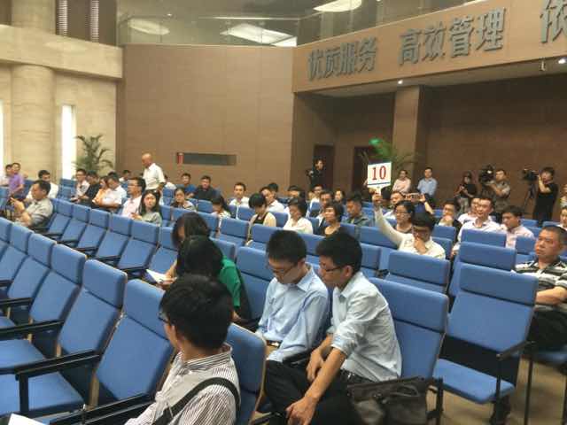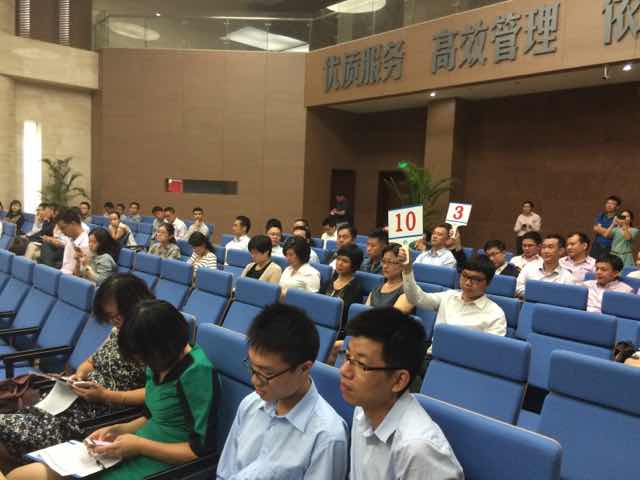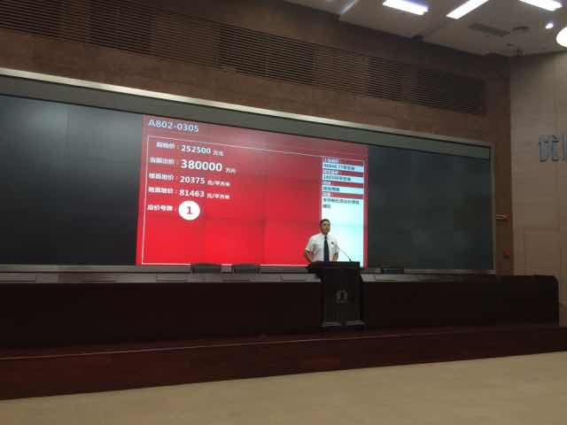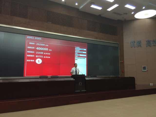 | 3點(diǎn)10分,現(xiàn)場(chǎng)競(jìng)買開始。當(dāng)價(jià)格迅速推升至30億元時(shí),主持人多次叫價(jià),但無(wú)人競(jìng)價(jià)。 |