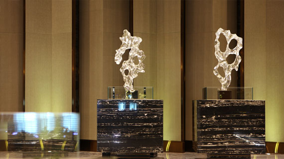 該項(xiàng)目還突破了傳統(tǒng)的單一大堂配置,運(yùn)用“多功能三進(jìn)式大堂”設(shè)計(jì),從社區(qū)、首層到地下,層層遞進(jìn)。其中社區(qū)門(mén)口大堂擁有400平方米,9米挑高,同時(shí)設(shè)有高科技門(mén)禁裝置,保證了安全性和私密性;7米挑高的室內(nèi)入戶大堂專配24小時(shí)私屬管家;地下的車(chē)庫(kù)大堂更是使用全石材鋪裝。