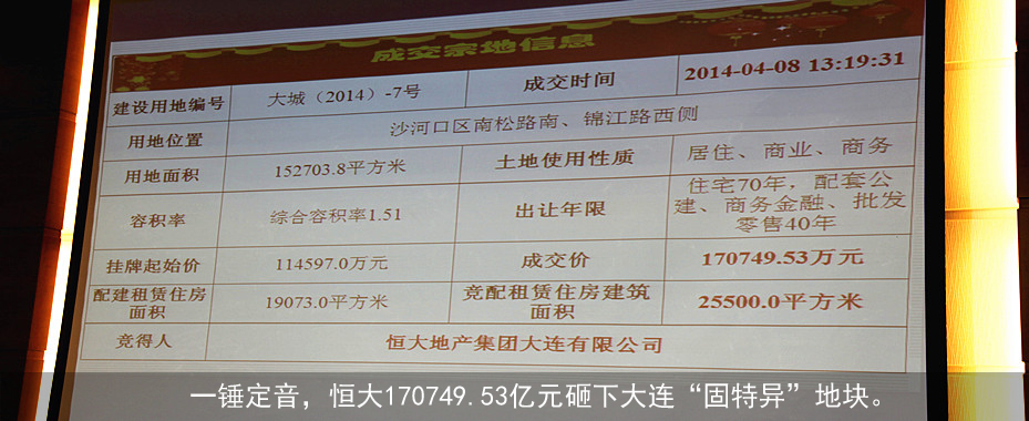 恒大17億大連奪地"固特異" 業(yè)內熱議"值不值"?今日,大連年度最熱固特異地塊經過數個小時148輪加價,終于被恒大地產集團大連有限公司以170749.53萬元加配25500平方米保障房競得,然而花落恒大雖塵埃落定,但固特異地塊何以引得房企大鱷如此鐘情又是否值得如此高價,引發(fā)了業(yè)內關注度的二次發(fā)酵。[詳情] |