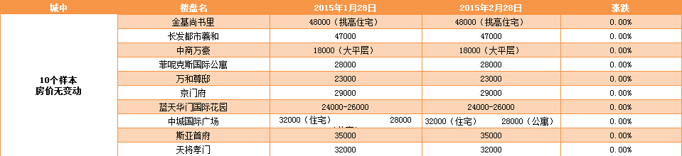 國家統(tǒng)計局發(fā)布《2015年1月份70個大中城市住宅銷售價格變動情況》。發(fā)布的數(shù)據(jù)顯示,1月份70個大中城市新建商品住宅價格環(huán)比下降的城市有64個,比上月減少2個;持平和上漲的城市分別有4個和2個,均比上月增加1個。其中,南京新建住宅價格環(huán)比持平?!?/span>…[詳細]