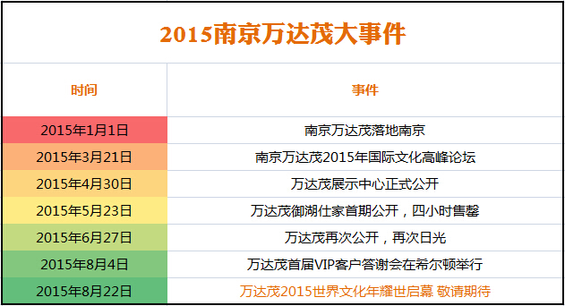 2015世界文化年當(dāng)天,將有俄羅斯、埃及、巴西等眾多國(guó)際的使節(jié),聯(lián)合國(guó)開(kāi)發(fā)計(jì)劃署項(xiàng)目官等世界名流,大家歡聚一堂,除了見(jiàn)證這一盛世活動(dòng)的啟幕,更將一起規(guī)劃出南京萬(wàn)達(dá)茂國(guó)際街,南京最長(zhǎng)的一個(gè)主題步行商業(yè)街的未來(lái)發(fā)展,打造出一個(gè)原汁原味的世界風(fēng)情街。