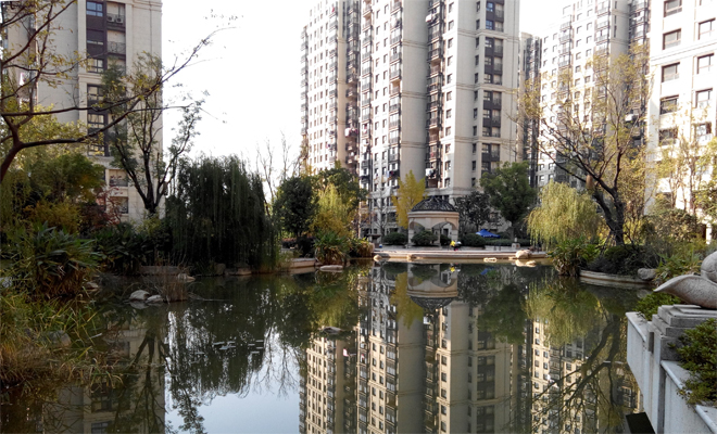 記者隨著她手指的方向看去,小區(qū)“湖”里確實(shí)養(yǎng)有許多小型的紅色鯉魚。“小區(qū)景觀綠化好,就跟公園一樣?!笔沁@位準(zhǔn)媽媽對(duì)她所居住的綠地紫峰公館的感受。