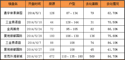 新華網(wǎng)記者將城北板塊熱點(diǎn)樓盤納入統(tǒng)計范疇,設(shè)定5-7三個月為統(tǒng)計區(qū)間,共涉及5家樓盤、7次不同體量的加推。 結(jié)果發(fā)現(xiàn),上述樓盤在推盤超過一個月時間后,僅有一盤去化率未達(dá)50%。[詳細(xì)]