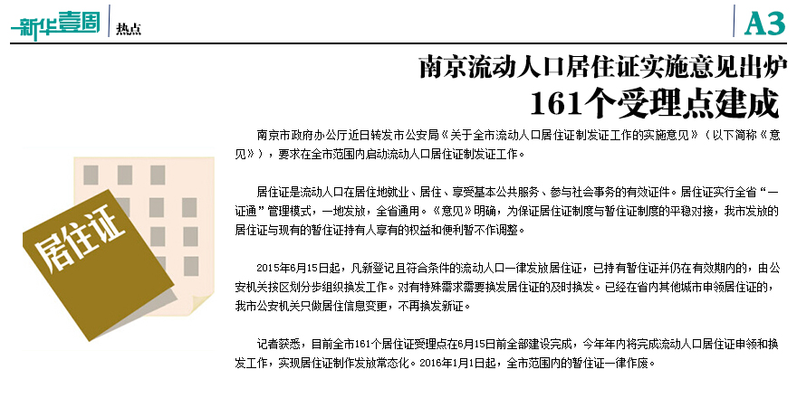 南京流動(dòng)人口居住證實(shí)施意見出爐