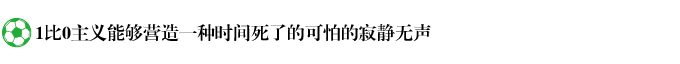 |  如果沒有1比0主義,足球會變成怎樣?世界會變成怎樣?沒有人能夠預(yù)見。 可是,1比0主義的存在讓足球和世界變成了一截又一截的分段,仿佛便秘一樣。同時,1比0主義又與一無所獲不同,一無所獲只是陳述略帶沮喪的結(jié)果,并不涉及自我定義的丑陋的平衡,而1比0主義的初心就是為了獲得而獲得,一方面力求1的出現(xiàn),另一方面還要維持0的平衡。在1比0主義者看來,1等于0,1就是0的平衡。 "首戰(zhàn)確保不輸與力爭取勝并不矛盾",韓國主教練洪明甫在這場比賽之前的新聞發(fā)布會上所說的這番話就是典型的1比0主義,他用一個極為常見的悖論為1比0主義辯解;至于卡佩羅,這位1比0主義的鼻祖,扳平比分后所做的一切就說明了他不遺余力在踐行1比0主義,哪怕他的對手也是1比0主義的繼承者。 兩位1比0主義者走到了一起,共同完成了1比1的緩慢沉悶令人昏昏欲睡的比賽,這就是這場比賽的結(jié)果。 讓比賽變得難看只是1比0主義的表面,更致命的是,1比0主義能夠營造一種時間死了的可怕的寂靜無聲,像懷揣心事的睡眠一樣,這會兒睡著了,卻不得安寧。 | ||