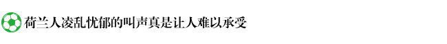 |  穿著一件不合時(shí)宜的衣服,荷蘭人像一只在冬天的寒冷里飛翔的海鷗,凌亂憂郁的叫聲真是讓人難以承受。以至于墨西哥領(lǐng)先了一段時(shí)間以后,我甚至動(dòng)了不忍之心和羞辱之心,希望荷蘭能夠在90分鐘的最后時(shí)刻扳平比分,然后30分鐘加時(shí)打平,最后點(diǎn)球決戰(zhàn)時(shí)荷蘭依舊被淘汰。 最終,劇情沒(méi)有完全依照我的想象進(jìn)行。一方面,"足球的傳統(tǒng)確實(shí)無(wú)法改變(by李崢)",一方面,我的不忍之心終究還是壓制了我的羞辱之心,讓我繼續(xù)堅(jiān)持混蛋也有人權(quán)的普世價(jià)值。 踉踉蹌蹌進(jìn)了八強(qiáng),荷蘭人會(huì)繼續(xù)飛翔,但是他們也不配贏得贊許和掌聲,因?yàn)槭蛞院?,荷蘭人就凌亂中帶有不堪,他們把原本兩腳的傳球變成一腳(西班牙人是把原本一腳的傳球倒成兩腳),成為繼巴西以后,另一只英格蘭附體的球隊(duì)。 對(duì)荷蘭人而言,現(xiàn)在已不再是黑夜,但還不是白天。 | ||