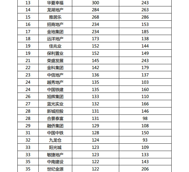 房企業(yè)績(jī)榜