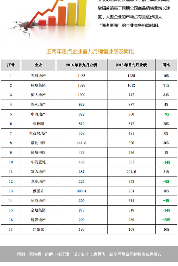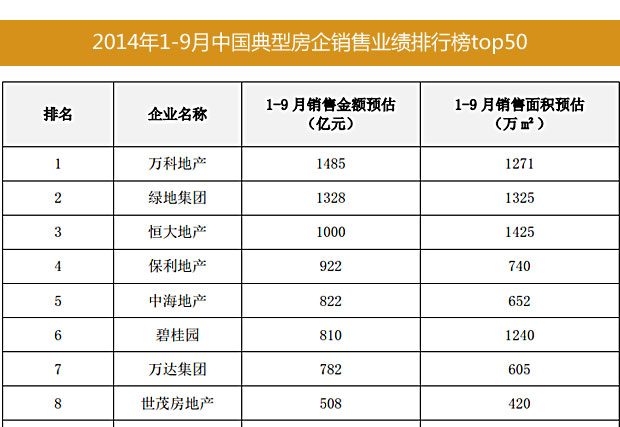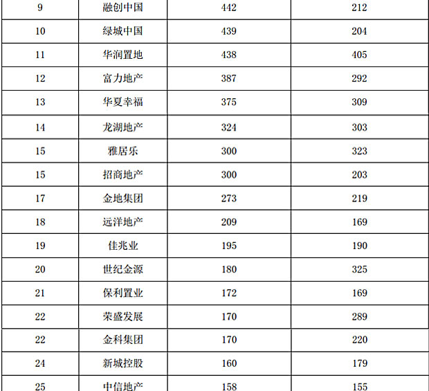 新華房產(chǎn)“房企業(yè)績(jī)榜”是新華網(wǎng)聯(lián)合房地產(chǎn)咨詢(xún)服務(wù)機(jī)構(gòu)億翰智庫(kù),結(jié)合中國(guó)大陸以房產(chǎn)開(kāi)發(fā)為主營(yíng)業(yè)務(wù)的企業(yè)經(jīng)營(yíng)數(shù)據(jù)(住宅),獨(dú)家發(fā)布銷(xiāo)售業(yè)績(jī)排行榜(TOP 50)。本欄目每月首周更新,時(shí)間跨度為從當(dāng)年初到發(fā)布月(不含)止,所選取物業(yè)屬性主要針對(duì)可售型住宅物業(yè),數(shù)據(jù)來(lái)源億翰智庫(kù)數(shù)據(jù)及各企業(yè)公報(bào)等。