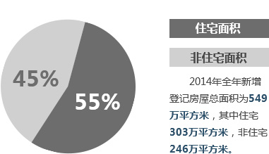 截止到2014年底,石家莊已進(jìn)行權(quán)屬登記的各類房屋總面積為11854萬(wàn)平方米,其中住宅7944萬(wàn)平方米,非住宅3910萬(wàn)平方米。